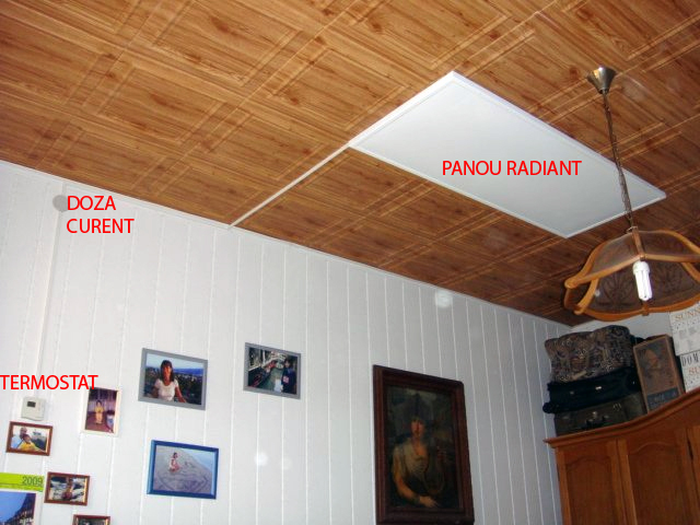 Foarte simplu: panoul se monteaza pe tavan sau perete(functie de model si eficienta), se conecteaza la o sursa de alimentare de 220V (prin introducerea steckerului in priza sau de la o doza de curent de pe perete), pe unul din fire se monteaza un termostat normal de camera(cu sau fara fir), si panoul incepe sa emita radiatie infrarosie de lungime lunga.